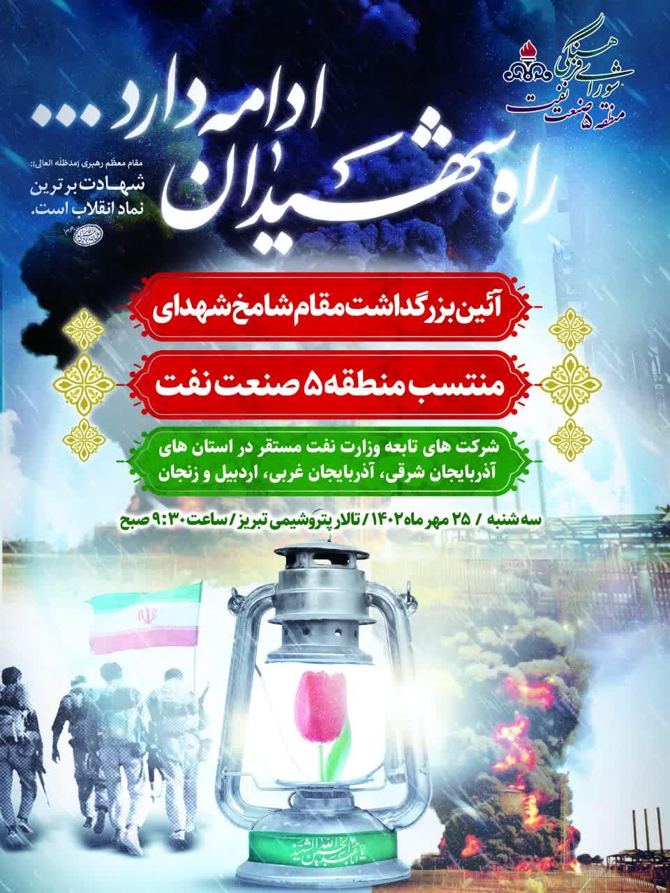 یادواره شهدای منتسب به صنعت نفت به میزبانی شورای فرهنگی منطقه ۵، در ۲۵ مهرماه در سالن اجتماعات پتروشیمی تبریز برگزار خواهد شد.