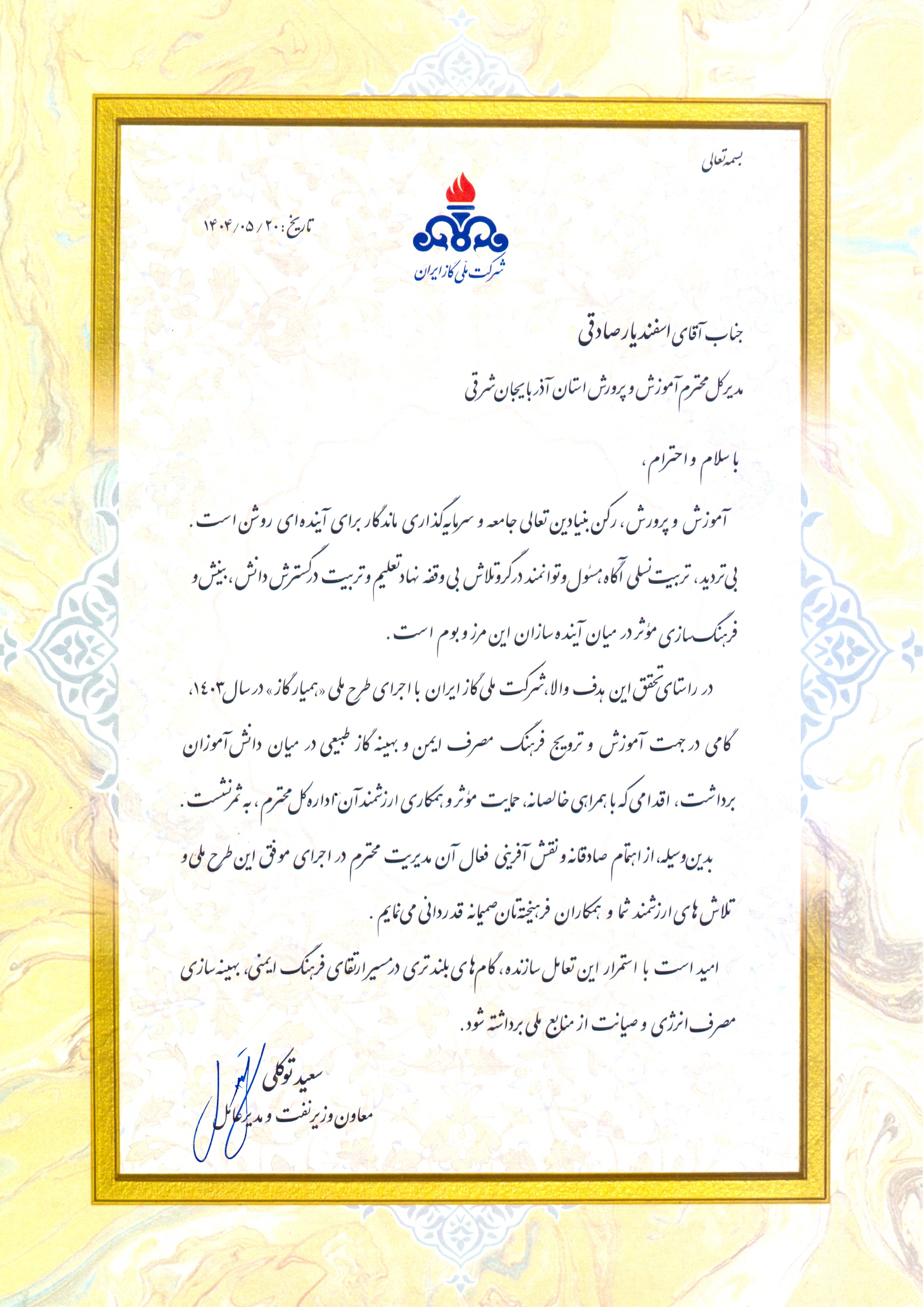 با همکاری مشترک شرکت گاز و آموزش و پرورش استان آذربایجان شرقی، فصل جدیدی در اجرای طرح جامع همیار گاز در مدارس استان آغاز می شود.